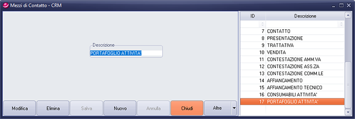 Per Inserire Modificare o Eliminare una Tipologia di Contatto: