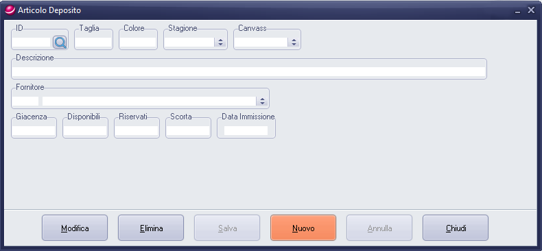 La scheda consente di gestire gli articoli presenti in deposito. Utilizzando l'utility Genera Articoli da Archivio GAC è possibile importare automaticamente tutti gli articoli di una determinata casa mandante già inseriti nel menù articoli.