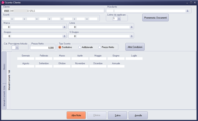 3.Nella scheda Sconto Cliente apportare le dovute modifiche;