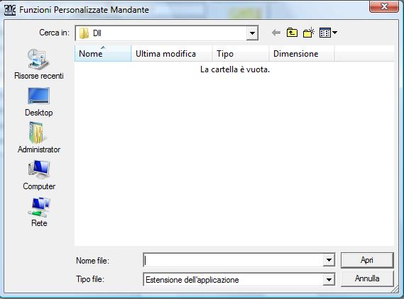 I file che è possibile richiamare tramite questa maschera devono avere estensione DLL.