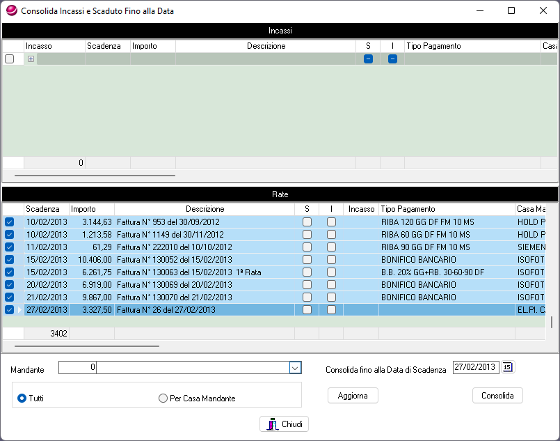 La funzione consolida incassi controlla tutte le rate:
