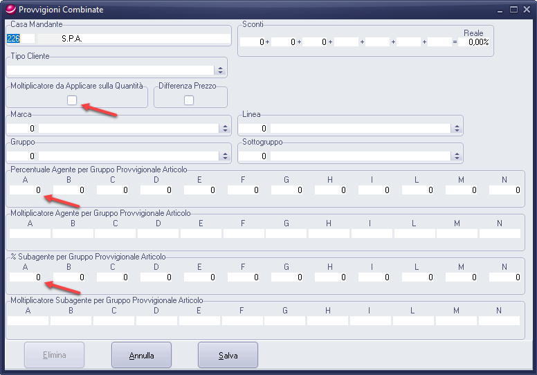 Per applicare le provvigioni fisse per quantitą. procedere come segue: